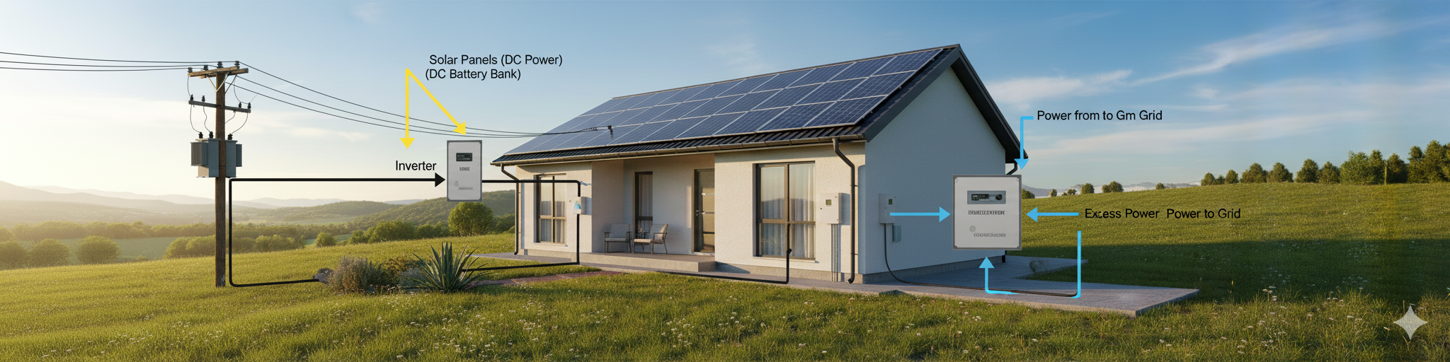 • Sunlight Absorption – PV cells in the panels convert sunlight into DC electricity.